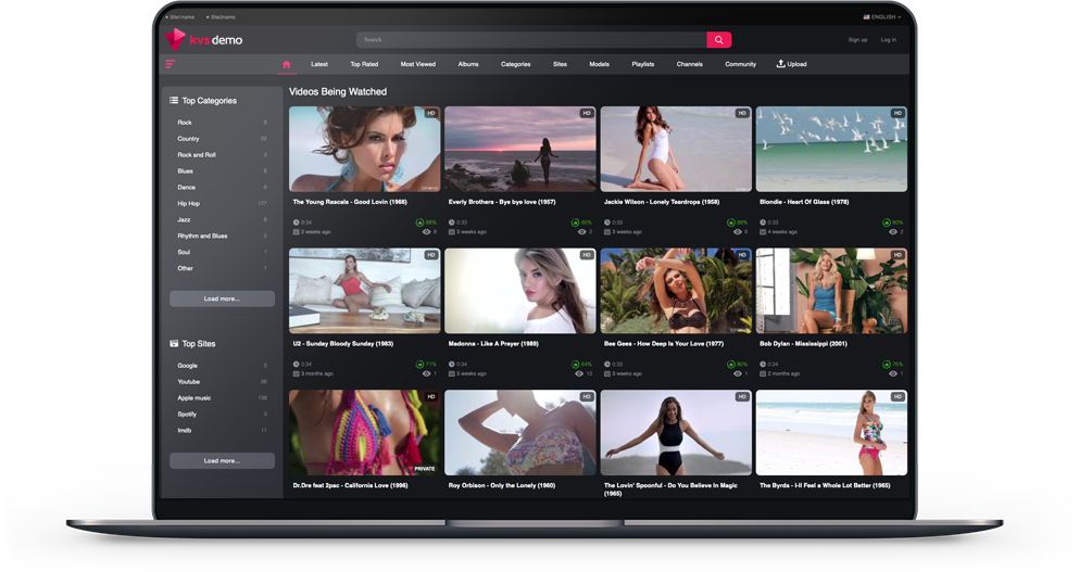 | Functionality | Videos, Photos, Categories, Tags, Models, Memberzone, Playlists, Premium access, Paysites, Channels, Member uploads, Friends, Internal messages, Memberzone events, Tokenomics |